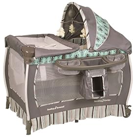 Baby Trend Deluxe Playard, Provence: Baby. There is a built-in electronic music center with volume control, nightlight and vibrations. Baby Trend designed the Deluxe Trend Playard with the mother in mind, providing a smart solution for those who want their babies next to them at night. This particular style, Provence features a combination of turquoise and brown using scrolls and prints to invoke a style for those with a more refined taste. This set includes the Close N Cozy Bassinet which is portable and freestanding and is used in joint with the Playard and includes extra storage side pockets. Not only does the Playard have a removable bassinet, but it also features a flip away changing table. For parents who travel often, this set includes a travel/storage tote bag to keep this convenient product on hand anywhere. The music center includes two styles of music, nature sounds as well as an input for MP3 players for personalization.
