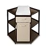 Badger Basket Diaper Corner Changing Table, White: Baby. Toys and accessories shown with the table are not included except as mentioned above. An innovative and unique angle on changing tables. Capitalize on the corner space in Baby's nursery. The Diaper Corner allows you to change your infant with feet pointing towards you. Also features abundant storage space on either side of the changing area and below. You won't believe it takes up such a small area in the corner. Measures about 36- High to the top of the upgraded, contoured, 16 by 31 by 3 inch changing pad. Measures 31.5 from the back corner to the front edge; 40.5 across the widest measurement from corner to corner. Also includes a safety strap and one white, terry cloth changing pad cover (extra covers sold separately). May be accessorized with Nursery Baskets (sold separately). Can be used as a storage/book shelf or TV/Media center when your child outgrows the changing table. Wipe clean with a damp cloth and mild soap. Table is made with wood, wood composites, and veneers. All paints and finishes are non-toxic. Assembly required; illustrated instructions included. Changing table can be used with children weighing up to 30 pounds.