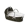 Badger Basket Moses Basket Gingham with Hood and Bedding, Espresso/Blue