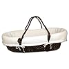 Badger Basket Moses Basket Gingham with Hood and Bedding, Espresso/Blue: Baby. All measurements approximate. This pretty Moses Basket creates a space for Baby anywhere in the house! A safe place for your baby to sleep at home or when visiting friends. Keep Baby close by wherever you are! Overall unit measures 30 inch L x 17 inch W x 18 inch H. Basket is 6 inch deep in the middle. Soft liner is made with crisp polyester/cotton fabric trimmed with a ruffle. Soft polyester fill pads the liner for comfort. Liner is removable and can be machine washed cold and tumbled dry low. Includes a polyurethane foam mattress pad with a wipe-clean, PEVA (non-PVC) vinyl cover. Also includes one, white, polyester/cotton fitted sheet. Additional sheets sold separately. Basket hood shades your baby, or it can be removed completely. Hood attaches with Velcro. Basket can be used until Baby is approximately 15 pounds (6.8 kg) or until Baby can push up or roll over unassisted. Basket should always be placed on a firm, flat surface. Never place it near the fireplace or open flames. Sturdy handles are woven onto the basket. The handle is actually one piece inch that goes down both sides and under the bottom. Although this basket includes handles, we do not recommend carrying the basket with your baby in it for safety reasons. When Baby outgrows the Moses Basket, use it as a place for storing stuffed animals or linens, or as a bed for dolls or pets. Product may vary slightly from shown. Complies with all current, applicable ASTM safety standards.