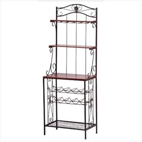Bakers Style Wine and Glass Rack: Kitchen & Dining. Open baker's rack inch design enhances home's decor! This stylish and functional unit has cradles for ten wine bottles, a rack for ten stemmed glasses and three spacious shelves for storage or display. .