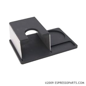 Barista Basics Stainless Steel Tamp Stand with Rubber Base and Tamp Rest: Kitchen & Dining. Whether you use a bottomless or spouted portafilter, our Stainless Steel Tamping Stand with Tamp Rest will help you execute a level tamp all the while keeping the portafilter bottom or spouts up off the counter top, reducing the risk of contaminating your espresso extraction with stray coffee grounds.
