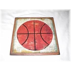 Basketball Sports Wall Art Sign Boys Bedroom Decor: Home & Kitchen. The background color is a chocolate brown color with touches of black to accent the print. We've sealed this Basketball print onto wood giving it a framed appearance. It measures approximately 13 inch squared by 1/4 inch thick (wood dimensions not including hanger).