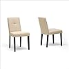 Baxton Studio Diaz Dark Brown Leather Dining Chair Set of 2: Home & Kitchen. This item will arrive fully assembled. Drawing inspiration from geometry, this contemporary leather chair offers a modern update to your home. The frame is sturdily constructed with wood and comfortably padded with foam cushioning. Rich dark brown bycast leather with edges finished in matching piping lends a classic touch to your space and is paired with black legs. Opaque non-marking feet give sensitive flooring additional protection. Overall dimension measures 19 inches wide x 24 inches deep x 36.5 inches high.