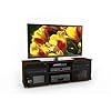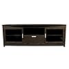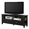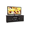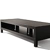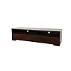 Baxton Studio Wythe Modern Wood TV Stand, Dark Brown: Home & Kitchen. Sleek silver metal handles complete the look. For simple style and convenient storage, the Wythe Media Stand offers space to stash your collection of media peripherals, accessories, DVDs, and more. The top surface is long enough to accommodate a wide range of varying television sizes and is best for flat panels. Storage areas include two small cabinets with a center area offering an adjustable-height shelf (3 positions). Each of these two open storage spaces includes holes in the backing, allowing you to organize cables. The modern TV Stand is made with pressed wood and finished in a dark brown veneer. Assembly is required.