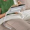 Bed & Chair Book Holder: Home & Kitchen. Tray is 14x9. Read books or magazines in bed without straining your hands, shoulders or neck. The book tray holds reading materials at just the right angle. Elastic strap holds pages open so you can read hands-free. Use while sitting in your favorite chair, too. Metal tube frame is 15H. Folds for storage.