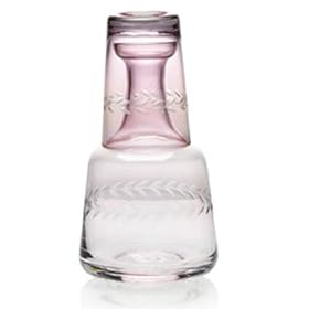 Bedside Desk Etched Glass Carafe & Tumbler Water Set: Health & Personal Care. The design is a small olive branch with small circles. This beautifully crafted bedside decanter perfect addition to any bedroom! The wide base body of the bottle sports a hand etched design that circles the bottle at the middle. The decanter has a tumbler that can be used as a cover for the top opening and for drinking.