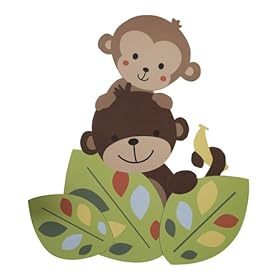 Bedtime Originals Curly Tails Wall Decor: Baby. This bright and colorful collection comes complete with a wooden lamp, oversized wall décor, coordinating musical mobile, wallpaper border and window valance. Our faux fur monkeys are at play amongst the palm fronds and a sweet yellow songbird joins in the fun.