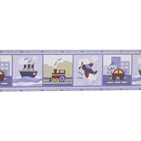 Bedtime Originals Travel Time Wallpaper Border - Blue: Baby. The adorable wallpaper border is a great complement to the Travel Time collection. Welcome baby home in style with this bright transportation themed bedding collection. This Travel Time wall paper border features the adorable transportation settings displayed throughout the bedding set. This wallpaper border has a measurement of 8 inch x 30.