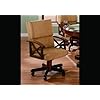 Belfast Oak Arm Chair on Casters: Home & Kitchen. Belfast solid Oak arm chair with medium lacquer finish crafted in great detail criss-cross armrest on a solid oak wood base with smooth rolling casters, well padded soft cushion seat and backrest beige upholstery, creates a very sophisticated design to perfectly decorate your home and for your family and guest to enjoy while game playing or dining.