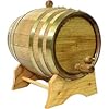 Oak Beverage Dispensing Barrel with Galvanized Steel Bands: 3 Liter - Scotch: Kitchen & Dining. (1) Stand. This American Oak barrel has been transformed into a one of a kind beverage dispenser, complete with a wooden spigot! With attractive galvanized steel bands and a convenient display stand these wooden wine barrels are the perfect way to serve drinks at your next party or event. Simply choose the size you need and decide whether or not you want the name of your favorite spirit laser burned onto the front of the barrel and you're ready to go. Features: Handcrafted from American White Oak. Made with 6 galvanized steel bands. Medium toast. Interior of the barrel is charred, no artificial paraffin wax is used. Great for aging various spirits or dispensing beverages. Choose to have your favorite spirit name laser burned onto the front of the barrel for no additional cost. Laser burned items cannot be returned or exchanged. Specs: 1L Dimensions: 4 1/2W x 4 1/2H x 6 1/2D. 2L Dimensions: 5W x 5H x 7 1/2D. 3L Dimensions: 5 1/2W x 5 1/2H x 8 1/2D. Shipping: Ships within 7 to 10 business days. Includes: (1) Dispensing barrel. (1) Bung.