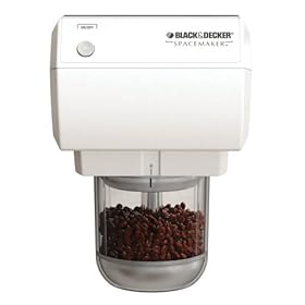 Black & Decker CG800 Spacemaker Traditional Mini Food Processor and Coffee Grinder, White: Kitchen & Dining. Best of all, the appliance provides a space-saving design that can easily be mounted under a cabinet to maintain maximum workspace on the counter. A nice addition to any busy kitchen, this two-in-one appliance functions as both a mini food processor and a coffee grinder. To use, simply add coffee beans to the transparent plastic container with the metal bottom, secure it in place, and press the power button to set the durable stainless-steel blade spinning. Coffee beans grind to an even consistency that helps ensure fresh, flavorful coffee. For food processing, the unit comes with a separate transparent plastic container with a rubberized lid and a blade for chopping. Use the mini food processor to chop up nuts, to dice onions and green pepper to toss into a salad or onto a pizza, or to grind up flax seeds for mixing into muffins or as an egg-substitute when baking. The machine's pulse-control button makes it possible to get fast, accurate results every time. A lid comes included for storing food in the refrigerator, and the two containers and blades remove for convenient cleaning.