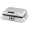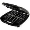 Black & Decker G48TD Grill and Waffle Baker: Kitchen & Dining. Afterward, the cord wraps around the hinge, plus you can stand the unit upright for compact storage. A waffle baker, grill, and griddle, this three-in-one appliance comes in handy during breakfast, lunch, dinner, and after school. Key to the unit's versatility are two 8-inch-square cooking plates--one set into the product's bottom and the other into the hinged top. On one side the plates form grids for making four waffles at once. Flipped over to show their flat sides they're capable of top and bottom grilling a sandwich or steak. To create griddle space, the top opens up flat, forming two 8-inch-square cooking surfaces for all foods that love a griddle--such as pancakes, hash browns, and eggs. Channels send grease to spouts in the griddles' corners, where it drains away. Nonstick to release food easily and wipe clean, the cooking plates also can be removed for scrubbing. A heat control offers high, low, and medium temperatures. With its chrome housing and stay-cool black synthetic handles, this 900-watt appliance looks great on the counter. It measures 11-1/4 inches wide, 5 inches high, and 11-3/4 inches deep and carries a one-year warranty against defects.