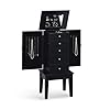 Black Jewelry Armoire - Coaster 900095: Furniture & Decor. The top opens up to reveal a mirror. The Black Jewelry Armorie from Coaster is great for the bedroom. The armoire has two side doors that open up and hold necklaces. The armoire is constructed from select hardwoods and veneers with a black finish.