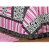 Pink and Black Madison Girls Children & Teen Bedding 3pc Full / Queen Set: Home & Kitchen. The gorgeous color palette of pink, black and white will set up your child's room in high style. The Madison 3pc girls full/queen bedding collection by JoJo Designs creates a stunning boutique setting for your young fashionista. This designer girl bedding set uses a sensational collection of JoJo exclusive 100% Cotton fabrics. It has a black and white scroll print, a bold designer stripe and a coordinating mini black and white polka dot print. Every piece is non allergenic and machine washable for ease and repeated use.