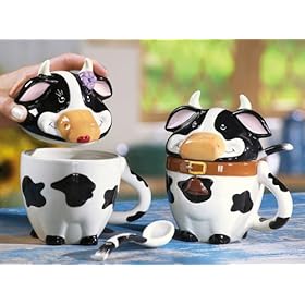 Black & White Cow Ceramic Mugs With Lids & Spoons By Collections Etc: Kitchen & Dining. Ceramic. Start your morning off right. Set includes two 9-oz. ceramic mugs with lids that helps keep drinks warm, and a pair of matching spoons. Just right for serving kids their hot chocolate or enjoying your afternoon coffee break. Microwave safe.