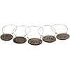 Blank Liquor Decanter Labels - Set of 6: Kitchen & Dining. Specs: Dimensions: 2 1/2W x 1 5/8H. This set of silver decanter labels includes six blank tags for you to engrave! Any local jeweler should be able to personalize each liquor tag with the text you want in the font of your choice. These sharp-looking tags are especially handsome when draped around bottles aligned on your back bar. In stock and ready to ship. Features: Made of nickel coated brass. Perfect for labeling decanter sets. Chain Length: 4.