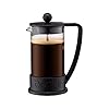 Bodum Brazil 3-Piece 12-Ounce French Press Multi-Color Tasting Set: Kitchen & Dining. All parts are dishwasher safe. The Bodum Brazil French Press Coffee Maker truly embodies what Bodum stands for: functional design at an affordable price. It comes in an array of exciting colors (including black, orange, red, green and white) and prominently features the Bodum logo with an updated and sleek handle design. The built-in, 3-part, stainless steel plunger has a fine mesh filter, which allows your coffee's aromatic oils and subtle flavors to be delivered directly to your cup instead of absorbed by a paper filter. Plus, no paper filter means no waste. The Bodum Brazil French Press Coffee Maker is made of borosilicate glass and BPA-free plastic.