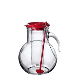 Bormioli Rocco Kufra Jug with Ice Container, Red Lid: Kitchen & Dining. Chiller pitcher cools any drink without diluting the contents, by ultilizing an tube that gets filled with ice, and then attaches to the top lid.