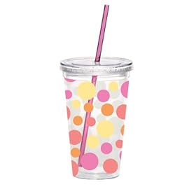 Boston Warehouse 77763 16-Ounce Insulated Tumbler with Straw, Scatter Dots Design: Kitchen & Dining. Includes straw. This 16-Ounce tumbler is great for hot or cold drinks - use it for everything, from smoothies to hot coffee drinks. It's made of durable acrylic. Tumbler has double wall insulation so your drink will stay cooler or hotter longer. Double wall also prevents condensation. It's perfect for on-the-go, indoor and outdoor use and can be used year around. BPA free. Clear with Hot Scatter Dots design. Hand wash.