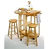 Beechwood Breakfast Bar: Home & Kitchen. The overall dimensions of the breakfast bar are H 33 x W 31.5 x D 29.63 (inches). The lovely Beechwood Breakfast Bar proves to be a practical addition to your home interior. It best suits to homes with limited space, as it is very compact in size. This breakfast bar set includes a cart and two stools. Crafted from solid beechwood, this set can be used for both indoor and outdoor purposes. The bar has wheels for easy transport. The stools can be conveniently stored on the cart when not in use. The round shaped innovative breakfast table comes with a drop leaf table and is big enough to accommodate two people comfortably. To provide your compact kitchen a clean and elegant look, the addition of this breakfast bar set will do a lot.