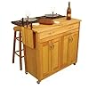 Breakfast Bar Kitchen Cart with Optional Stools: Home & Kitchen. Color/Finish: -Wood top with polyurethane finish.-Kitchen cart base has lacquered natural finish. 5089-95 / 88324 Kitchen cart with breakfast bar Features: -4 utility drawer on metal glides with stops.-2 storage areas with raised panel doors.-Brushed chrome handles.-Breakfast bar folds down.-Built-in spice rack.-Towel bar.-Paper towel holder.-4 casters (2 locking). Includes: -Set includes the kitchen island and 2 optional stools. Construction: -Solid hardwood construction. Assembly Instructions: -Some assembly required.