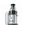Breville JE98XL Juice Fountain Plus 850-Watt Juicing Machine: Kitchen & Dining. Other highlights include a handsome heavy-grade polymer exterior, a safety locking arm, overload protection LED to protect the motor, and top-shelf dishwasher-safe removable parts for quick cleanup. Enjoy the superior flavor and nutrition of freshly juiced fruits and vegetables with this countertop juicing machine. Simple to operate, the 850-watt unit features an extra-wide 3-inch feeder chute that accommodates even large chunks or entire pieces of fruit or vegetables, which means less chopping beforehand. Just place a glass or small pitcher under the spout, insert the desired produce, and gently press down using the included pusher. The juicer's ingenious dual-speed motor and powerful stainless-steel cutting disc quickly and effortlessly extract the juices from a variety of foods, including soft melon and cucumbers or rind-on pineapple, thick-skinned apples, and carrots. In fact, it can produce 8 ounces of juice from whole apples in just five seconds. Choose high speed (12,000 RPMs) for denser fruits and harder vegetables and low speed (6,500 RPMs) for leafy vegetables and soft fruit. The machine comes equipped with a large-capacity pulp collector, which captures the maximum amount of bitter pulp, seeds, and skin to yield smooth, delicious juice. Accessories include a 1-liter juice jug with a froth separator, a stainless-steel micro mesh filter basket, and a cleaning brush for the micro mesh filter basket.