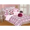Pink and Brown French Toile and Polka Dot Girls Bedding 3pc Full / Queen Set: Home & Kitchen