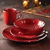BrylaneHome 16-Pc Embossed Dinnerware Set (PURPLE,0): Home & Kitchen. Includes 4 each: 10 1/2 inch dinner plates, 8 1/2 inch salad plates, 6 inch bowls and 12-oz. Its innovative squared design in rich, regal purple makes this stoneware set a tasteful addition to both formal and casual tables. mugs.