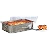 BrylaneHome Extra-Deep Lasagna Pan (STAINLESS,0): Kitchen & Dining. Super-sized spatula included. Extra-Deep Lasagna Pan Doubles As A Roaster. New, improved design includes an air-tight plastic lid to preserve freshness and prevent spills! Create the thickest, richest, cheesiest lasagna ever. 4'-deep sides prevent bubble-overs! Stainless steel Pan comes with a footed rack for roasting leg of lamb, ham-even turkey. Lift-up handles for easy transport. Dishwasher safe.