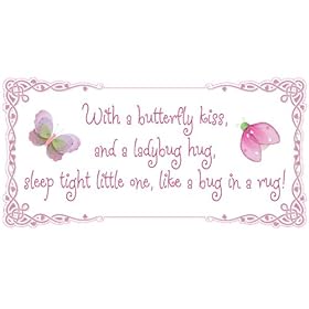 With a butterfly kiss, and a ladybug hug, sleep tight little one, like a bug in a rug! Removable Wall Vinyl Sticker - stickers art sayings quote butterflies ladybugs lady bug nursery girl room decor baby nursery girls decor decoration decorations: Home & Kitchen. You can use our beautiful butterfly decorations and dress up costumes to decorate your little girls butterfly themed birthday party. Bugs-n-Blooms specializes in nylon butterfly decorations, hanging dragonflies, ladybug decor, bumble bees and daisy flower decor for your little girls nursery or bedroom. Our butterflies are designed to coordinate with any bedding to create a stunning garden themed room using our dragonfly, ladybugs, bumble bees and daisy flower decor. Our elegant nylon accessories are perfect to hang from the ceiling or attach to the walls. All of Bugs-n-Blooms hanging decorations are made with a soft bendable wire frame and nylon fabric; which are nicely accented with sequins, glitter, and/or beads. Our stunning butterfly decorations can also add a special touch to a butterfly wedding, girls butterfly birthday party, baby shower, or a corporate event. Our hanging decorations come in a variety of styles, colors and sizes. Our decorative designs are perfect for any room in the house; making a home cheerful & colorful. At Bugs-n-Blooms we also have beautiful butterfly costumes, which include butterfly wings, tutu skirts, butterfly wands and headbands. All of our dress up costumes coordinates beautifully together.
