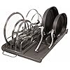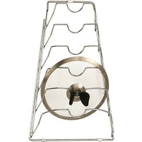 Cabinet Door Lid Rack - Chrome: Home & Kitchen. Saves space in cabinets and pantries by utilizing unused space behind doors. Create free space in kitchen cabinets and keep the lids for your pots and pans neat and organized with the Pot Lid Rack. This lid rack mounts to the inside of cupboard or cabinet door allowing you to utilize the unused space behind a cabinet or pantry door. Featuring sturdy steel wire construction with a non scratch coating to protect up to six cookware lids of varying sizes from scratches or damage this cabinet door lid rack maximizes storage space in the kitchen while protecting expensive cookware. Cabinet Door Lid Rack Features Constructed from sturdy heavy weight metal to provide year after year of reliable performance. Non scratch coating protects stored pot lids from being damaged. Accommodates as many as six cookware lids. This cabinet door lid holder keeps cookware and cabinets neat and organized while protecting expensive cookware from being scratched or damaged.