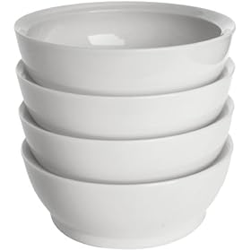 CaliBowl Non-Spill 28-Ounce Low Profile Bowl with Non-Slip Base, Set of 4, White: Kitchen & Dining