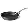 Calphalon Contemporary Nonstick 12-Inch Omelette Pan: Kitchen & Dining. Looks aren't everything however, and this cookware line is not simply another pretty face! No indeed, this collection is constructed of heavy gauge aluminum, reknowned for its fast and even heating, and it's lined with durable non-stick for easy clean up and low fat cooking. Get together with Calphalon Contemporary Nonstick. Sharing great food with friends and family is surely one of life's most delicious pleasures. And Calphalon Contemporary Nonstick makes it so easy to get together! Designed to fit your style of cooking, living and entertaining, Contemporary Nonstick features an exclusive nonstick interior, formulated for durability and effortless clean-up. (Our nonstick coating makes preparing healthy, low-fat meals a snap, too.) Constructed from heavy-gauge hard-anodized aluminum, Contemporary Nonstick cookware heats evenly, sears quickly and browns foods beautifully--and it's guaranteed to last a lifetime. Even a quick glance at Calphalon Contemporary Nonstick tells you, there's something exciting happening in the Calphalon Kitchen. You notice it in the cookware's gracefully curved vessels . . . in its elegantly arched, subtly polished handles and sparkling glass-and-stainless covers. We designed Contemporary Nonstick so you wouldn't dream of hiding it in the kitchen--you'll want to bring it right to the table. The Pot Lucky pan is just right for casseroles, risotto, mashed potatoes and more. Contemporary Nonstick's full-capacity line helps prevent over-filling and simplifies serving! Contemporary Nonstick cookware is designed for versatility. Vessels are shaped to accommodate several different techniques. Many feature two loop handles, to easily allow for both stovetop and oven cooking. (All Contemporary Nonstick pans are oven-safe to 450 degrees.) They're also perfect for serving--whether in the kitchen, dining room, living room or den. The Entertainer is a perfect example: it sautés, braises, or bakes with equal finesse! Contemporary Nonstick's stay-cool long handles make stovetop cooking more comfortable and convenient. Making omelettes to order is no problem--your Daily Sizzle pan's handle will stay cool no matter how many you have to flip! Pancakes, French toast, toast, and eggs over-easy all slide effortlessly from atop your Morning Glory pan. And clean-up takes no time at all, thanks to an exclusive Calphalon nonstick coating. The Morning Glory is also ideal for grilled sandwiches and veggie burgers. Don't make brunch--or lunch--without it! Some things can't be rushed. Pot roast, for example. And your Mama's marinara. From braised beef to simmering soups, Contemporary Nonstick cookware is the perfect choice for slow-cooking. Constructed from heavy-gauge hard-anodized aluminum, it heats gently and evenly--allowing spices to meld and mellow and meats to turn fork tender--without sticking or scorching.There are times when you barely have a minute to toss together soup and a sandwich. Heat-and-eat inch is the order of day. That's why Contemporary Nonstick includes pans of all shapes and sizes--for every day as well as entertaining. Your Short and Saucy pan is perfect for warming soups and sauces, cooking vegetables and much more. Contemporary Nonstick features: Hard-anodized exterior--nonstick techniques interior for easy clean up and the ability to cook with healthier ingredients and techniques Nonstick is oven safe to 450 degrees Flared for access--wider at the top Contoured corners--accommodates utensils--makes stirring easy Handles--ergonomic--stay cool Helper handles--comfortable, attractive and functional Tempered glass covers provide visual control of cooking process Vessels are a hybrid of several shapes--makes creating any dish a success Vessels have a Full Capacity Line plus additional capacity beyond this point making for easy stove to table serving Vessel shapes are functional and attractive Lifetime warranty Nonstick coating won't peel, chip, flake, crack   Constructed from virtually pure, hard-anodized aluminum for superior heat distribution and conductivity Riveted handles provide strength and durability   Contemporary design Brushed stainless steel handles Glass covers are reinforced wi[6250] From the comfortably arched handles to the stylish flared silhouettes, the Calphalon Contemporary line is designed to please. So if you want to saute with minimal fat, and clean up with minimal effort, this large pan is highly recommended.