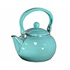 Calypso Basics 2.2-Quart Whistling Teakettle with Glass Lid, Turquoise: Kitchen & Dining. It is a whistling tea kettle, so will alert you when your water has boiled. This 2.2 quart tea kettle is made of enamel on steel. It is a perfect size and will provide you with many cups of wonderful tea.