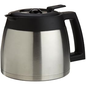 Capresso 10-Cup Stainless Steel Thermal Carafe with Lid for CoffeeTeam TS Coffee Maker: Kitchen & Dining. When used with the Capresso CoffeeTeam TS Digital Coffee Maker, the carafe lid stays closed during the brewing process, allowing the brew to enter through a small hole in the lid while preventing aroma and heat from escaping. Handsome in appearance and ingeniously designed, this 10-cup stainless-steel thermal carafe keeps coffee and other drinks hot for up to four hours. With its drip-less spout and screw-in lid that turns to a pour position, the carafe can also be used on its own merit as a server of hot or cold drinks on a brunch or dinner buffet.