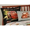 Cars Buddies Full Comforter, Black: Home & Kitchen. The collection also offers a blue comforter that comes as a set with bedskirt and pillow sham. Get your child's motor running toward bedtime with this colorful comforter for Full beds from the Cars bedding collection, which brings together fast friends Lightning McQueen and Tow Mater from the Disney/Pixar animated classic, Cars. The comforter features a black ground with large-scale illustrations of the two pals at the center. It's accented by embroidered and appliqued patches at the bottom gray checkered border, and it reverses to a diamond plate pattern on a gray ground with sponsor logos and Lightning McQueen's 95. It's made from 60 percent cotton/40 percent polyester with a 180-thread-count, and it has a 100 percent polyester fiber fill that's comfortable throughout the year.