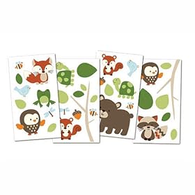 Carters Tree Tops Wall Decals: Baby. Friendly and full of whimsical character, little woodland animals, and tree branches and leaves give you an abundance of choices in creating a forest theme. You will have so much fun decorating your child's wall with these colorful and detailed Tree Tops wall decals from Carter's. Easy to peel, apply and position, the decals won't harm walls or windows, and are removable and reusable with self-stick adhesive.