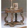 Hand Carved Leaf Antique Wood End Table with Round Glass Top: Furniture & Decor. Decorated with hand carved designs and an antique distressed finish, this table is just outright gorgeous. The Antique Finish End Table by Coaster manufactured in traditional style is sure to give your living room a royal feel.