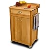 Catskill Craftsmen Open Storage Cuisine Cart: Home & Kitchen. The veneer sides are warp resistant, and add to the sturdy construction. Catskill Craftsmen has become the nation's leading manufacturer of ready-to-assemble domestic hardwood kitchen islands, carts, and work-centers. Catskill Craftsmen manufactured items are made from naturally self-sustaining, non-endangered North American hardwoods, primarily Northern Yellow Birch. Lumber is purchased from area sawmills, then dried, manufactured, and packaged on site. All sawdust, shavings and waste materials generated during the manufacturing process is converted into wood pellet fuel, and used to heat homes. This functional kitchen cart allows for an assortment of storage options: cabinet, shelf or drawer. The top, doors, drawer, legs and braces are all make from domestic hardwood. Brushed nickel hardware and towel bar add to the beauty, while the locking caster wheels allow for mobility or locked-in-place stationary use within the kitchen.
