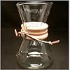 Chemex Coffee Maker 1 - 3 Cup Classic: Kitchen & Dining. For five decades the coffeemaker that was once available only to a circle of acquaintances has been enjoyed by connoisseurs around the world. Few products in this century can match the flawless blending of design and function of the Chemex®. Its visual elegance has earned it a place in the permanent collection of New York's Museum located in Corning, New York. The Chemex® coffeemaker was also selected by the Illinois Institute of Technology as one of the 100 best designed products of modern times. The Chemex® coffeemaker, together with Chemex-Bonded® coffee filters, makes perfect coffee; clear, pure, flavorful, and without bitterness or sediment every time. The coffee only comes in contact with the scientifically designed filter and non-porous glass. With the Chemex® method, you can make coffee as strong as you like without bitterness. Perfect for iced coffee and coffee flavoring for gourmet recipes. Because of its purity, Chemex® brewed coffee can be covered and stored in the refrigerator for heating...without losing its flavor! Chosen as one of the 100 best designed products of modern times, the Chemex® coffeemaker is found in the permanent collections of the Museum of Modern Art, Smithsonian and the Philadelphia Museum of Art, as well as in fine gourmet stores everywhere. This merging of form and function came out of Chemist Peter Schlumbohm's taste for fine flavor. Applying the techniques used to insure laboratory purity, he set out to brew what may have been the first cup of truly clear, full-bodied coffee - free of undesirable fats, oils, sediment and most of all...bitterness. But the Chemex® coffeemaker's greatest distinction is that once it brews coffee to the most exacting personal requirements, the filter and grounds are removed in a single package, leaving a carafe as at home with fine china as it is with the first cup of morning coffee.