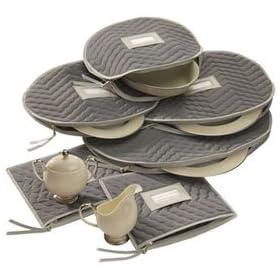 China Serving Pieces Storage Set - Deluxe Quilted Microfiber (Light Gray) (12h X 16w X 3d): Kitchen & Dining. The quilted Microfiber fabric is sturdy and soft, ideal for fine china storage. Protect your serving platters and creamers in this set of 6 quilted storage containers. Any type of dish, from the finest China to seasonal pieces can benefit by the use of these protective storage bags. Save your dishes from nicks and scratches with these protective cases! These storage sets unzip approximately 1/2 of the way and are soft and pliable so its easy to insert china.