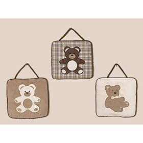 Chocolate Teddy Bear Wall Hanging Accessories by JoJo Designs: Baby. These wall hangings also make great gifts. These adorable wall hangings by JoJo Designs have been created to coordinate with the matching children's sets. This will complete the look and feel of this adorable bedroom theme for your child. These plush handcrafted wall art hangings are great to add dimension and a splash of color to any bedroom. You will receive a set of 3 wall hangings that are made by JoJo Designs and goes with the matching set perfectly.