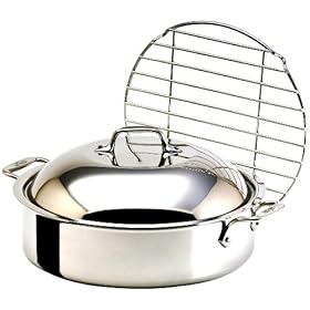 All Clad Stainless-Steel 6-Quart French Braiser with Rack: Kitchen & Dining. Durably constructed, the cookware features a three-ply design, consisting of a layer of aluminum sandwiched between two layers of polished stainless steel, which helps deliver fast, even heating. Braising works well when cooking larger, tougher cuts of meat--start by searing in hot oil and finish by simmering in water, stock, wine, or other liquid until the meat--or fish, seafood, or vegetables--becomes fully cooked and deliciously tender. This French-style braiser measures approximately 14-4/5 by 13-1/2 by 6-1/5 inches and offers a generous 6-quart capacity, which nicely accommodates pot roasts, ribs, and other favorite family recipes. Furthermore, its flared rim allows for easy pouring of juices and gravies, and a round-shaped stainless-steel rack insert comes included for added versatility. Oven-safe up to 400 degrees F, the unit comes equipped with riveted side handles that promote a secure grip and safe transfer in and out of the oven and from the kitchen to the table, while its domed lid creates a roomy interior and helps hold in heat, moisture, and nutrients.