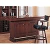Clarendon Traditional Bar with Marble Top - Coaster 100173: Furniture & Decor. A faux wicker panel on the front of the bar adds a touch of casual appeal too, making this bar the perfect choice for your home. This sophisticated traditional bar will be a welcome addition to your home. Finished in a rich warm medium wood tone, this piece will blend beautifully with the decor in your entertainment room. Fluted columns and carved details at the corners are elegant, with a smooth dark marble top for the ultimate in luxury. A generous work surface, two storage doors with enclosed storage space inside, a wine rack, and a stemware hanging rack offers everything you need to stay organized while entertaining friends.