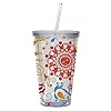 Clay Art 16 oz. Purple Medallion Tumbler & Straw: Kitchen & Dining