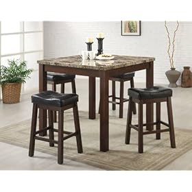 Coaster 5-Piece Dining Set, Faux Marble Table Top with 4 Barstools, Cherry Frame: Home & Kitchen. Dining 5-piece table set table faux marble top with 25-1/4-inch upholstered saddle stools.