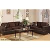 Coaster Park Place Brown Velvet Sofa: Furniture & Decor. Sleek tapered block legs and your choice of fabric upholstery options - a soft and breathable chocolate microfiber or a luxurious cream colored velvet - blend for a casual style infused with sophisticated elegance. Contemporary meets comfortable in the chic slightly retro styling and cozy pillow back of this stationary sofa. A two seat cushion design provides a sleek and simple look accented with flair tapered arms and exposed wood tapered block feet. Your choice of buttery soft brown microfiber or luxurious cream colored velvet lets you create a custom look and texture that suits your tastes. Loose throw pillows wrapped in a matching fabric complete the stylish comfort of this sofa. The Park Place living room collection represents the intersection between contemporary design and comfortable living. This sofa, love seat, ottoman and chair set offers a subtle retro-contemporary style that's versatile enough to mix and match with most styles of decor. Flair tapered arms and a plush, pillow back design combine for superior comfort. Solid wood frame construction ensures that the exquisite Park Place living room set will be yours to love for years to come.
