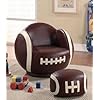 Coaster Kids Sports Chairs Small Kids Football Chair and Ottoman: Furniture & Decor. If your child has a love for sports, then this chair and ottoman will make a perfect addition to their bedroom or playroom! Imitating the look of a football, this small kids football chair will create a fun, exciting, and unique look that friends will admire Pair with the football ottoman for a complete athletic appeal Baseball, soccer ball, and baseball chairs and ottomans are also availableFeatures:Casual styleShapely Rounded ArmsAttached BackPadded Seat BackComfortable Cushioned SeatRounded baseSpecifications:Chair dimensions: 19.5H x 24.75W x 26D inchesOttoman dimensions: 8.5H x 14W x 13.375D inchesWeight: 34.76 lbs.
