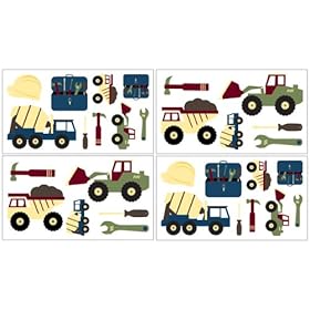 Construction Wall Decals - Set of 4 Sheets: Baby. These wall decals make great gifts! Enhance your room decor and create an interesting and stimulating environment with these great wall decals. Design your child's bedroom in a theme they will love! JoJo Designs removable wall decals add a fun and colorful touch to any bedroom. *NOTE: These decals are intended for standard flat wall finishes and may not adhere completely to a textured wall.